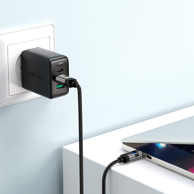 Choose the Acefast C15-03 cable if you care about fast charging, durability and modern parameter control. It supports charging with up to 60 W and data transmission at 480 Mb/s. The built-in LED display shows the current power in real time, which increases the comfort and safety of charging. The construction based on reinforced zinc alloy connectors and abrasion-resistant nylon braiding ensures durability confirmed by 10,000 bend tests. The perfect choice for smartphones, tablets and laptops with a USB-C port.