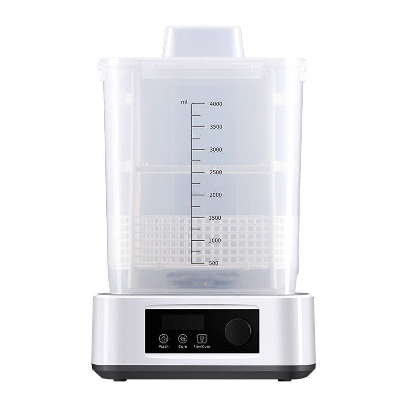 Das Gerät bietet Ihnen drei Betriebsmodi: Waschen, Aushärten und FlexiCure-Härtung mit der mitgelieferten UV-Lampe. Die Reinigungs- und Trocknungszeit lässt sich von 1 Minute bis 30 Minuten einstellen. Die Bedienung des Wash & Cure 3-Modells erfolgt über ein benutzerfreundliches Drehrad und berührungsempfindliche Tasten.