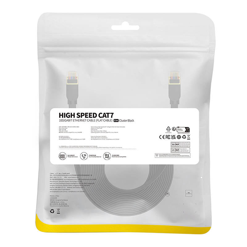 Baseus Ethernet RJ45 Flachnetzwerkkabel, Gigabit, Cat.7, 8 m (schwarz)