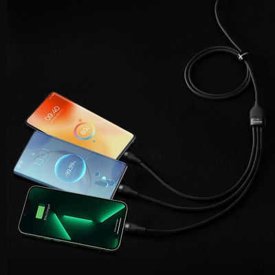 A multi-functional USB Type-C charging cable with 3 plugs should be in every home! It is perfect for powering popular electronic devices - phones, lamps, small fans and others with a micro USB, USB Type-C and Lightning connector.