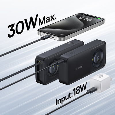 One of the unique advantages of the Baseus Free2Pull Powerbank is the ability to charge two devices at the same time. Thanks to the built-in USB-C cable and USB-C port, you can charge your phone and tablet at the same time, which is ideal for frequent travelers. You no longer have to choose which device to charge first - now you can charge both at the same time.