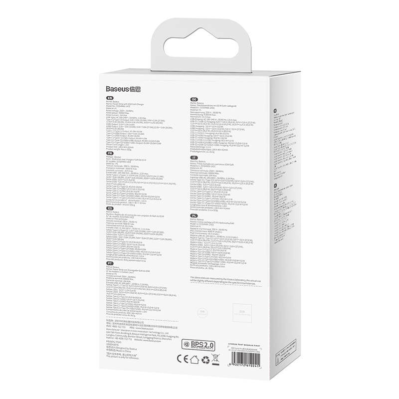 Baseus GaN3 Pro Netzladegerät / Steckdosenleiste 2x USB + 2xUSB-C + AC, 65W.