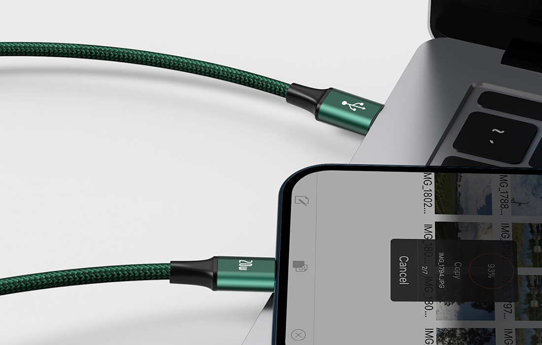Übertragen Sie häufig Dateien zwischen Geräten? Dieses praktische Kabel wird Ihnen sicherlich nützlich sein! Der Lightning-Anschluss ermöglicht Ihnen nicht nur das Aufladen Ihrer Geräte, sondern auch die Datenübertragung mit einer Geschwindigkeit von bis zu 480 Mbit/s. So können Sie alle benötigten Fotos, Dokumente oder Filme in kürzester Zeit kopieren. Hinweis: Während der Dateiübertragung können Ihre Geräte nicht aufgeladen werden.