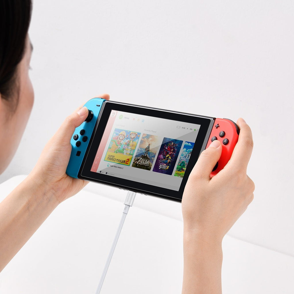 Das Produkt unterstützt bis zu 100 W Leistung, bis zu 5 A Stromstärke und Schnellladeprotokolle wie FCP und QC3.0. So können Sie Ihren Laptop oder Ihr Smartphone sofort aufladen und sparen Zeit! Sie müssen nicht mehr ewig warten, bis Ihr Telefon wieder einsatzbereit ist – mit Baseus dauert es nur wenige Augenblicke. Sie können das Kabel auch zum Aufladen Ihrer Nintendo Switch-Konsole verwenden – das dauert nur etwa 2,5 Stunden!