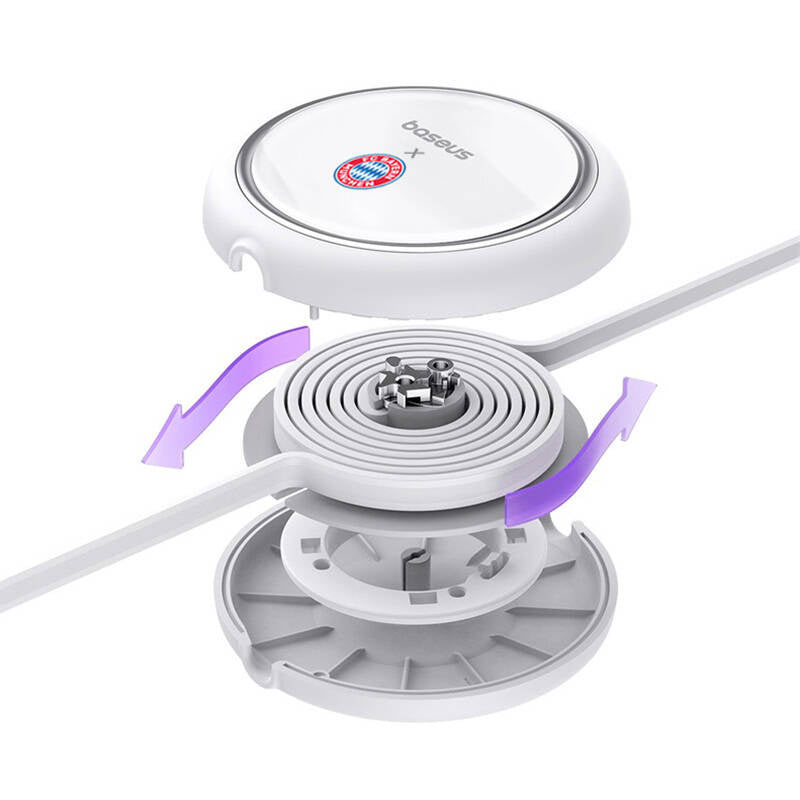 Das Baseus Free2Pull USB-C-auf-USB-C-Kabel bietet eine einstellbare Länge in vier Bereichen: 35 cm, 60 cm, 83 cm und 100 cm. Dank des eingebauten Mechanismus funktioniert es reibungslos und zuverlässig und passt sich Ihren Bedürfnissen an. Gleichzeitig ist es sehr leicht und nimmt im zusammengeklappten Zustand wenig Platz ein, sodass Sie es bequem tragen können. Das Produkt ist mit den meisten Geräten mit USB-C-Anschluss kompatibel. Das Bayern München-Logo verleiht ihm zudem einen sportlichen Touch, den jeder Fan dieses legendären Vereins zu schätzen wissen wird.