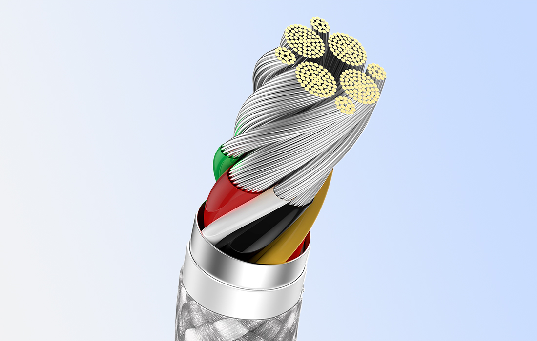 Machen Sie sich keine Sorgen um die Sicherheit Ihrer Geräte. Das Kabel ist mit einem intelligenten E-Marker-Chip ausgestattet, der für deren zuverlässigen Schutz sorgt. Darüber hinaus sorgen bis zu 324 Drähte aus verzinntem Kupfer für eine effizientere Signalübertragung.