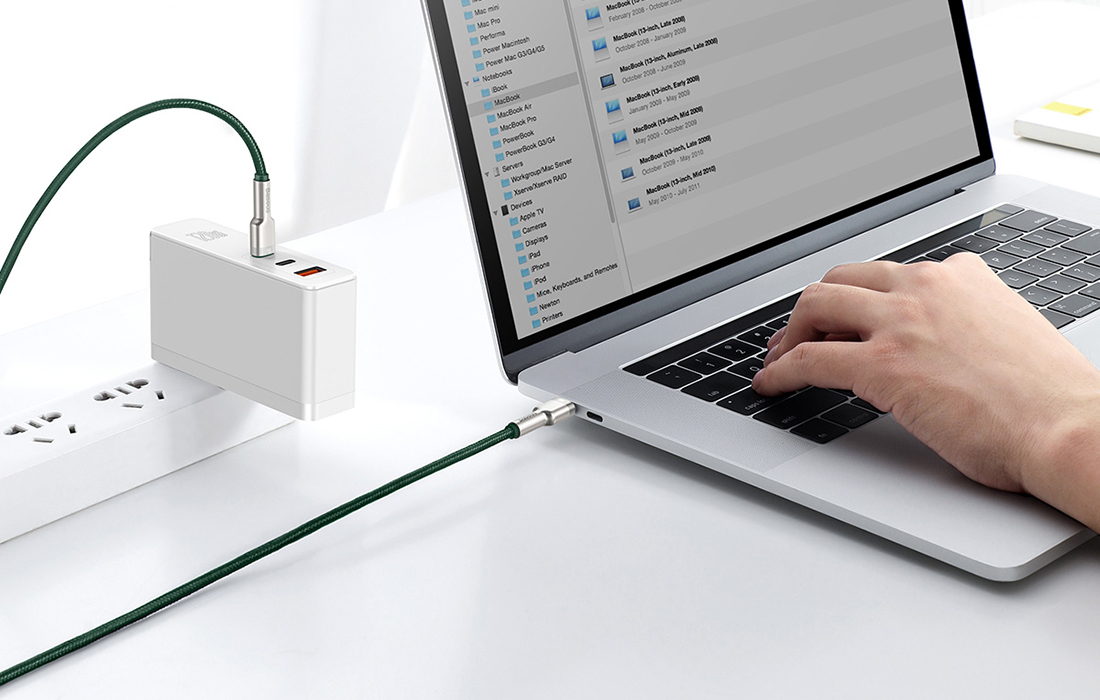 Dank des verbesserten Designs überhitzt das Kabel selbst beim Laden von Laptops mit 100 W Leistung nicht. Der integrierte E-Marker-Chip erkennt angeschlossene Geräte intelligent und passt Spannung und Stromstärke an, um deren Sicherheit zu gewährleisten. Darüber hinaus sorgen die acht verzinnten Kupferdrähte des Kabels für schnelleres Laden und geringeren Stromverbrauch.