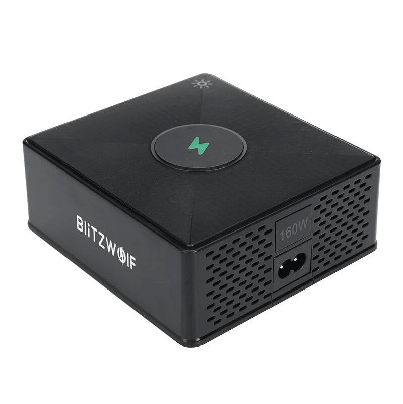 Der BlitzWolf 868H ist ein modernes Gerät, das selbst die Anforderungen anspruchsvollster Benutzer erfüllt. Ausgestattet mit zwei USB-A-Anschlüssen und drei USB-Typ-C-Anschlüssen bietet er eine Gesamtausgangsleistung von 160 W, sodass Sie mehrere Geräte gleichzeitig laden können. Dank intelligentem Laden und Unterstützung der Protokolle PD+QC 3.0 erhält jedes angeschlossene Gerät in kürzester Zeit die optimale Leistung.