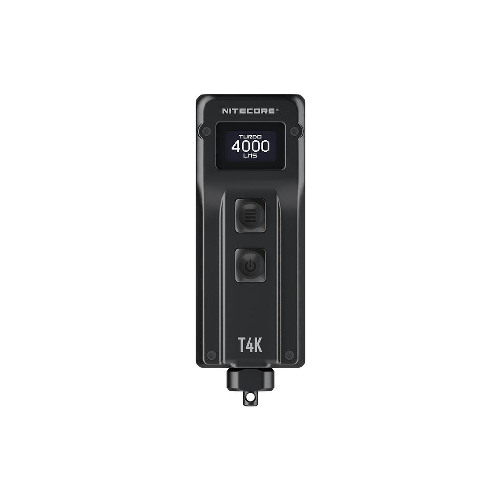 The Nitecore T4K keyring light has an incredible maximum output of 4000 lumens from the 4 x Cree XP-L2 V6 LEDs and is powered by a built-in, 1000mAh li-ion battery. The flashlight is rechargeable via a USB-C port at the base of the torch and comes with a USB-C to USB charging cable. Offering a staggering output for the size of the light, the T4K is a technical breakthrough in the lighting industry! Nitecore have precisely calculated the display, quad-core emitters and dual buttons to pack them into an ultra compact housing without compromising on an excellent user experience. The Nitecore T4K provides two user modes: demo and daily. In Demo mode the torch will automatically turn off if there has been no operation in 30 seconds; in this mode a countdown will be displayed on the screen. In Daily mode the light stays on until turned off by the user. To switch between the modes, press and hold the power and mode buttons simultaneously until the LED flashes. 1 flash indicates the torch is in demo mode and 2 flashes is for daily mode. The torch features a multifunctional OLED real time display screen offering information on the battery voltage, brightness level, user mode and remaining runtime. Additionally, the T4K has a quick release keyring attachment so that you can easily remove the light from your keychain to use as a stand alone torch, then simply reattach when ready. Brightness Levels: Turbo: 4000 lumens - Short burst mode only High: 200 lumens - 2 hrs 45 mins runtime Mid: 65 lumens - 7 hrs runtime Low: 15 lumens - 21 hrs runtime Ultralow: 1 lumen - 67 hrs runtime Maximum beam distance 209 meters, waterproof to IP54 and resistant to impacts up to 1 meter. Includes: USB-C charging cable, key clasp.