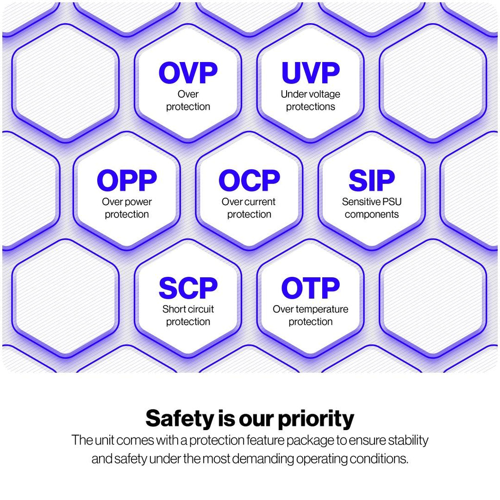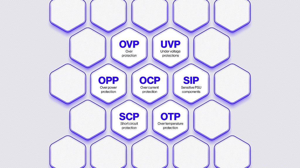 Over current/Over power/Over voltage/Short circuit/Surge & inrush protection (SIP)/Under temperature/Under voltage