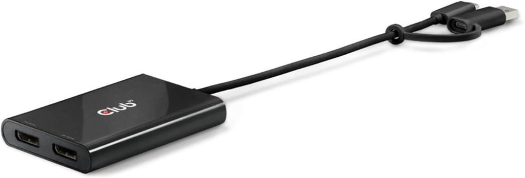 USB Type-C (with USB Type-A adapter) to dual DisplayPort™(4K60Hz) Video Splitter The Club 3D CSV-1478 USB Type-C (with USB-A adapter) to dual DisplayPort™ (4K60Hz) Video Splitter with DisplayLink® which provides most advanced, efficient solution. It supports max. single 4K60Hz or dual 4K60Hz simultaneous output of different videos(Extened Desktop). It can work on USB Mode and DP™ Alt mode supported USB Type-C and USB Type-A hosts.