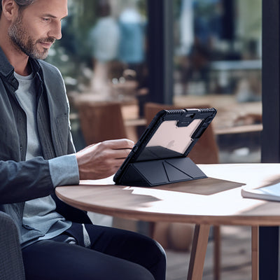 The dual-layer construction of PC panel and TPU frame combined with elegant PU leather finish not only enhances the protection of your tablet but also adds class and style to it.