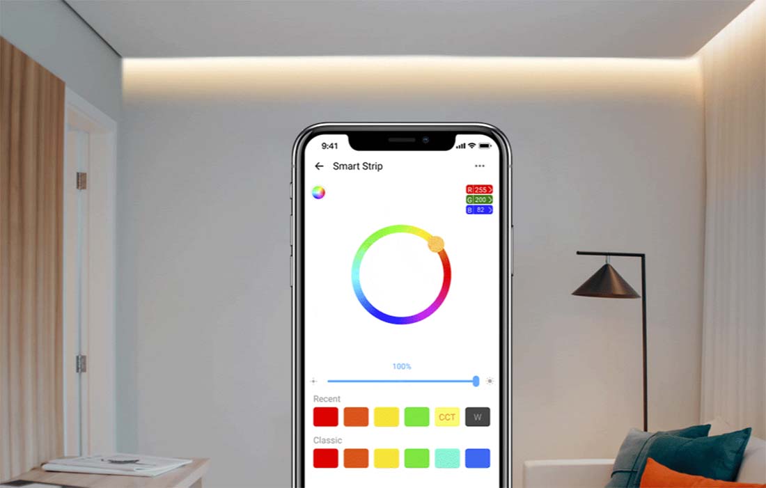 Sie haben keine Zeit und brauchen etwas Licht? Oder möchten Sie das Licht ausschalten und haben keine Lust, aus Ihrem gemütlichen Bett aufzustehen? Kein Problem – Sie müssen nicht einmal nach Ihrem Telefon greifen! Der L2 Lite LED-Streifen ist mit den Sprachassistenten Google Assistant und Amazon Alexa kompatibel. So können Sie ihn bequem mit den richtigen Befehlen bedienen. Mit nur wenigen Worten können Sie das Licht einschalten, etwas heller machen, Ihre Lieblingsfarbe wählen oder die Farbtemperatur ändern.