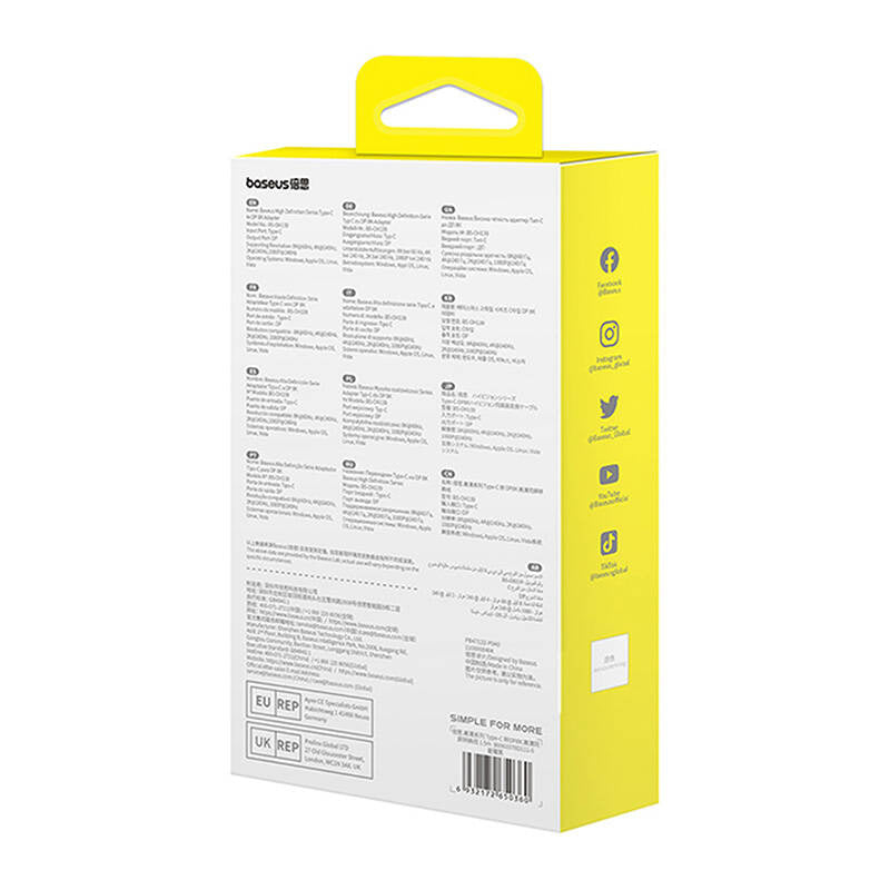 The USB-C connector is currently one of the most popular and versatile on the market, allowing the Baseus USB-C to Mini DisplayPort cable to be easily connected to a wide range of devices. Whether it's a phone, tablet, or laptop, this adapter will certainly meet the expectations of even the most demanding users.