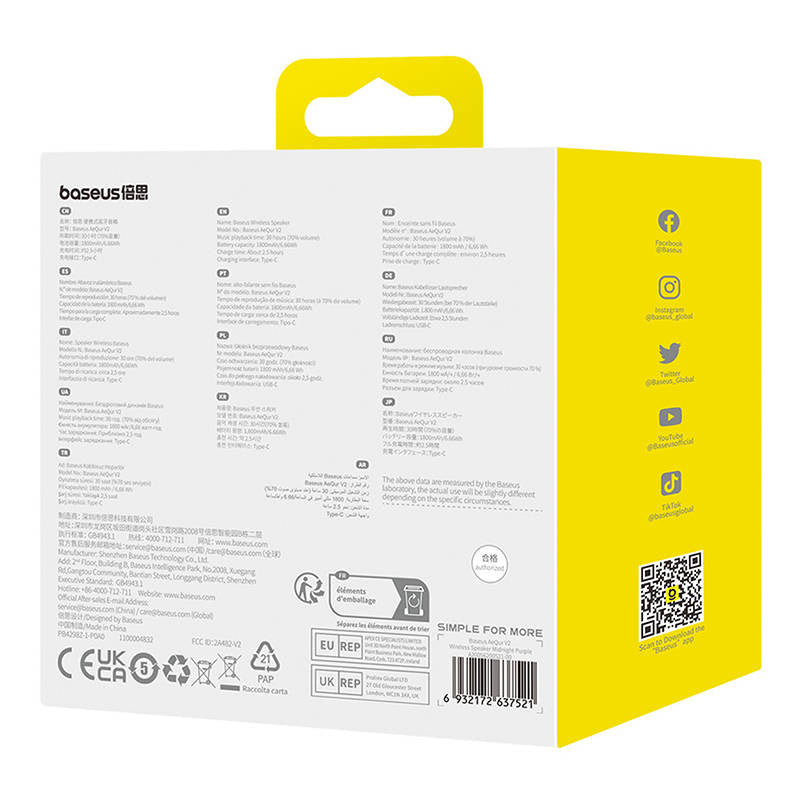 Choose the AeQur V2 speaker and listen to your favorite music no matter where you are. Featuring a 40mm driver, the speaker delivers richly detailed surround sound with deep bass. It offers 3 different music playback modes, which you can conveniently change using the touch panel. Its operating time reaches 30 hours on a single charge, and its unique design and small footprint are sure to delight many users.
