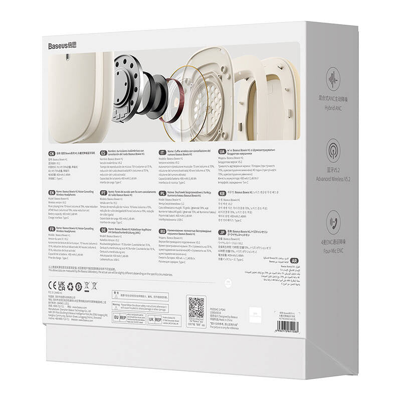 The Baseus Bowie H1 wireless in-ear headphones are the perfect choice for any music lover. The large 40mm drivers provide high quality sound, while the active noise cancellation of up to 40dB allows you to cut off the noise. Enjoy up to 70 hours of battery life on a single charge and talk comfortably on the phone with 4 built-in microphones. Bluetooth 5.2 ensures a reliable connection, and the ergonomic design guarantees comfort.