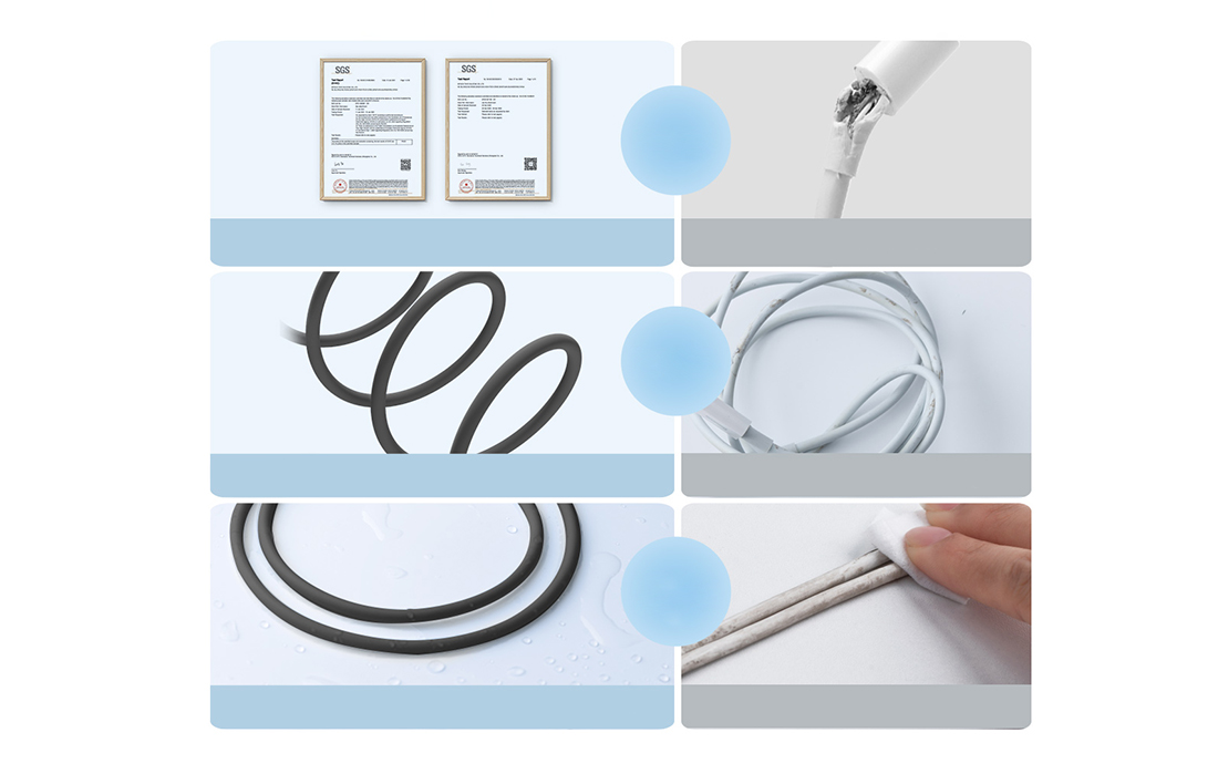 The cable is protected with durable silicone, making it much safer to use than a regular rubber cable. The accessory is SGS certified, will not tangle or break and is smudge resistant. Anyone who has owned a rubber cable will immediately notice a huge difference.