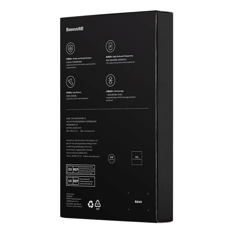 Baseus tempered glasses are distinguished by their high hardness and high level of protection. Thanks to them, you can say goodbye to scratches on your camera and carry your phone in your purse, backpack or pocket without worry. What's more, the structure of the glass protects the camera in case of a fall. An additional oleophobic coating prevents greasy fingerprints and stains on the lens, so that just the right amount of light always enters the lens. Despite its properties, the lens is thin and transparent enough not to interfere with the camera in any way.