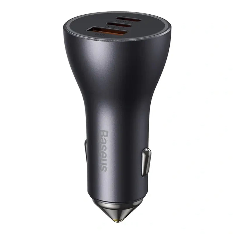 The Baseus Golden Contactor Pro has 2 USB-C ports (25W + 20W) and a single USB-A port (20W). The USB-C outputs are compatible with Apple PD, Xiaomi QC, Samsung AFC and other fast charging protocols. USB-A additionally supports Huawei SCP / FCP. Bet on outstanding performance that will never let you down! Compatibility with 12 volts - 24 volts makes it suitable for all common car cigarette lighters.