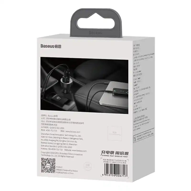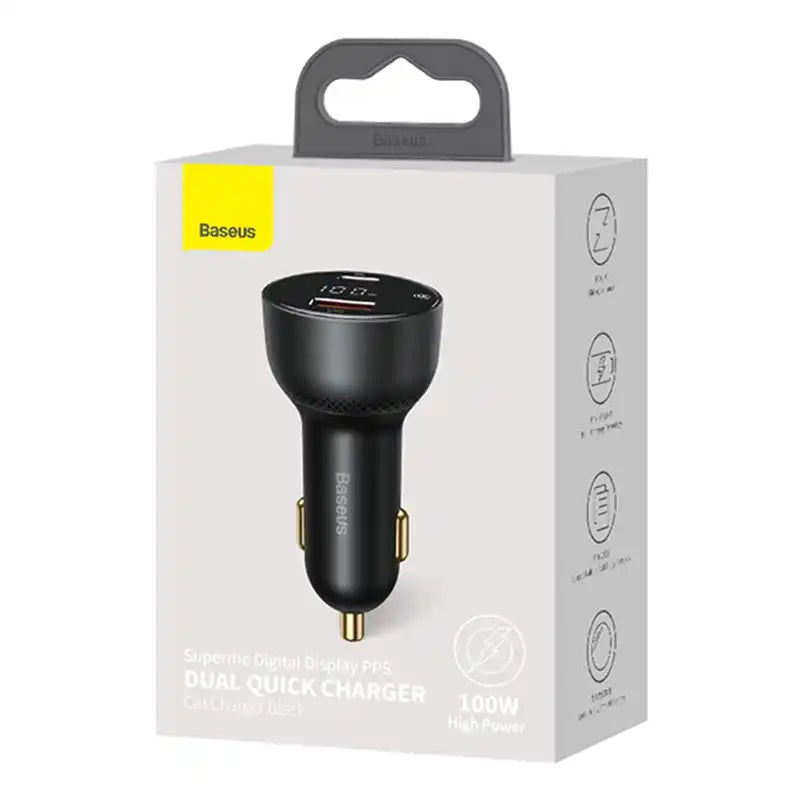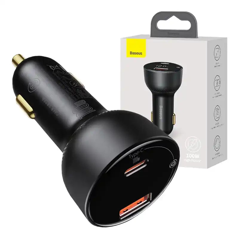 Your phone or laptop got discharged while traveling? Now it is not a problem anymore! Baseus car charger is equipped with 2 ports - USB-C and USB, which allows you to quickly charge up to 2 devices at the same time! Its maximum power reaches 100W. The product is compatible with most 12V-24V vehicles, and thanks to technological solutions used ensures the safety of use. The charger is also equipped with a practical digital display.