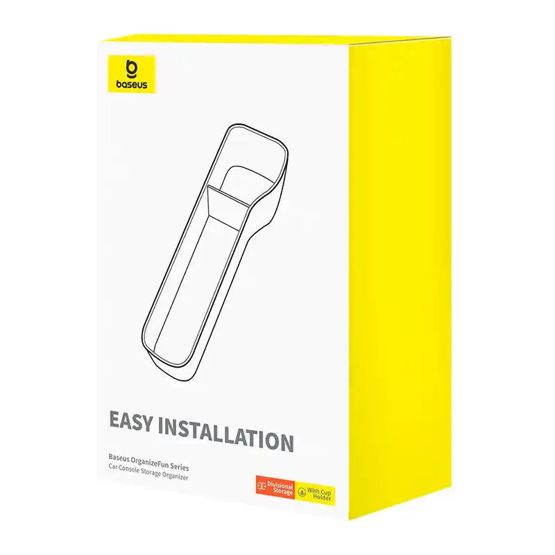The Basues OrganizeFun organizer is distinguished by its large capacity and is divided into two compartments that allow you to conveniently store a variety of accessories. In one compartment you can store items such as your phone, keys, cards, lighter, receipts or glasses case. The other compartment acts as a cup holder that will keep your beverage safe and stable while driving, eliminating the risk of spills.