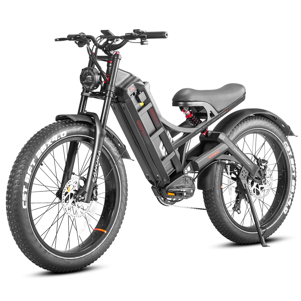 Meet Romeo Pro, designed for riders who want adventurous and long last cycling. The best 48V ebike battery made by EV-class safety standards with 60Ah capacity. Ride for longer distances now, no more worrying about running out of power. Featuring a moped-style design frame crafted from high-quality carbon steel, beyond exceptional traction and handling.