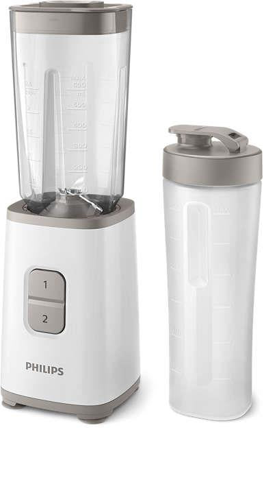 Mini Blender HR2602/00 Strong 350W motor for smooth blends It's quick and easy to make the smoothest blends. Finely blend your favorite ingredients in as little as 30 seconds with the powerful 350W motor and 4-star blade Crush ice and other hard ingredients Whether you're making a veggie dip or healthy smoothie, your mini blender can handle it all. From kiwis to ice cubes, finely blend and crush even hard ingredients. Compact design Thanks to its compact and modern design, you can store your mini blender on your kitchen counter and keep it in reach for those busy days when you're in a rush. Dishwasher safe accessories Enjoy the convenience of removable accessories that you can clean in your dishwasher