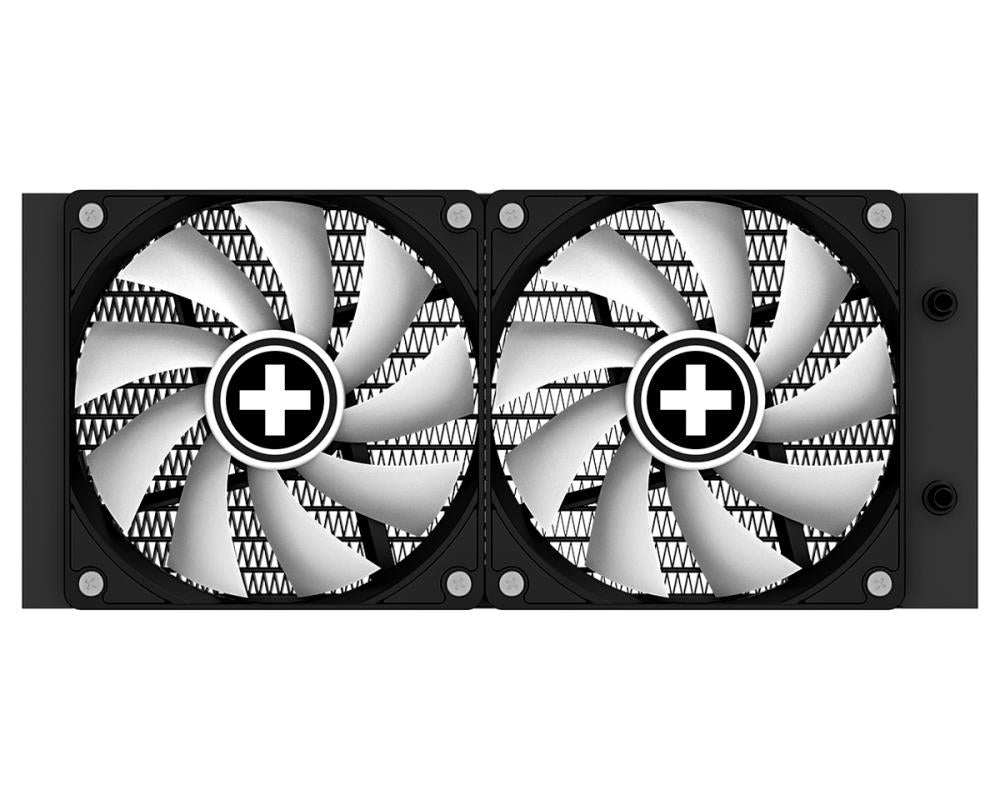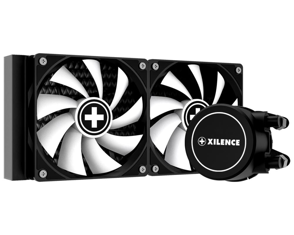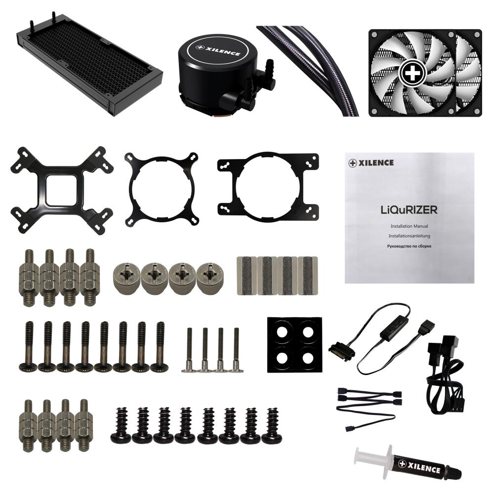 The new maintenance-free all-in-one liquid cooling system from Xilence can convince with an outstanding priceperformance ratio and easy handling. The installation with the quick-mount-system really easy and safe and due to the included multisocket-mountings it can be applied on every socket from AMD or INTEL. The elegant sleeved and soft tubes follow easily the planned way of mounting, no matter if the radiator is placed in the back, top, front or bottom of the case. The huge full-copper heat-spreader below the LED lit pump head and the powerful radiators, together with the hydrobearing PWM fans guarantee a silent running and a high performance. Available as a 240mm ARGB LED version with ARGB LEDs on the pump head and 2 transparent ARGB LED PWM Fans.