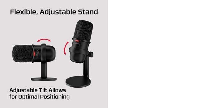 Easy-to-use USB microphone for streamers and content creators. For video editors, streamers, and gamers looking for a USB microphone with great sound quality, the HyperX SoloCast is a must have. It’s Plug N Play, making it simple to use, with some of our fan-favorite conveniences like the tap-to-mute sensor and LED mute indicator. The versatile microphone has a flexible, adjustable stand and is also compatible with most boom arms, so it can either sit on your desk or work mounted. Certified by TeamSpeak and Discord and compatible with OBS, XSplit, Streamlabs OBS and a number of other programs, it’s an extremely streamer-friendly microphone. Plug N Play audio recording Get quality audio recordings with this easyto-use USB condenser microphone. The cardioid polar pattern prioritizes sound sources directly in front of the microphone. Flexible, adjustable stand The easy-to-position stand swivels to support a variety of setups. You can even t it under a monitor if your setup is tight onspace. Tap-to-Mute sensor with LED status indicator Simply tap the top of the mic to mute, and the signature LED indicator lets you immediately see whether or not you’re broadcasting.