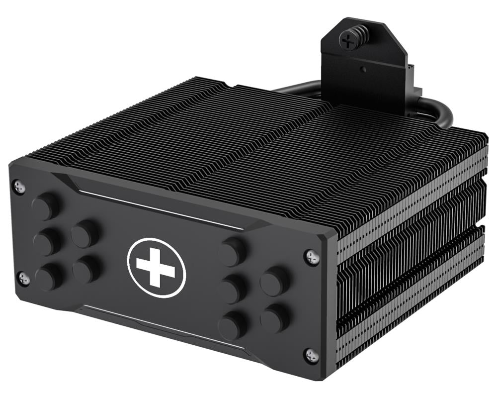 XC061 | M705D The compact M705D is a tower cooler with double fan from the A+ series. It has four extremely powerful black heat pipes, which dissipate 220W of waste heat to the countless cooling fins and thus predestine it for potent multi-core processors. Due to the direct contact of the heat pipes, the heat transfer between CPU and cooler is extremely efficient and very even. Suitable for cooling processors with very high levels of waste heat. The multi-socket means that the cooler can be used on all current Intel and AMD sockets. In addition to the double heat sink and the two PWM-controlled 120mm fans, the scope of delivery includes a holding module for the LGA socket 1700/2066/2011/1200/1151/1150/1155/1156 / and AMD AM4, illustrated assembly instructions and a tube of thermal paste. - Elegant black design with top cover - One heat sink with lamellar design ensure efficient cooling of the CPU and all surrounding components - Two black 120mm PWM fans, liquid-stored - Five 6mm copper heat pipes for maximum heat dissipation - Hotspots are avoided by slightly protruding the fans on the top and bottom - The fans can be mounted on both sides of the heat sinks - Suitable for all common AMD & INTEL sockets