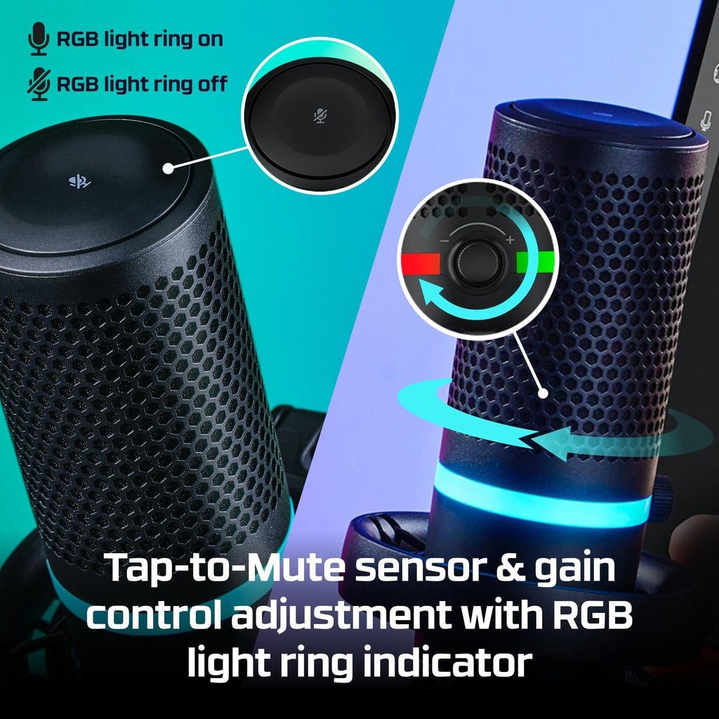 DuoCast - USB Microphone (Black) - RGB Lighting. Type: Game console microphone, Microphone input impedance: 32 Ω, Bit rate: 24 bit. Connectivity technology: Wired, Device interface: USB. Product colour: Black, Country of origin: China, Compatible products: PC, PS5, PS4, Mac. Power source: USB. Microphone weight: 503 g