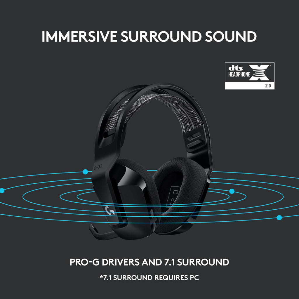 1 May vary based on user and computing conditions. Battery life is based on headset volume set to 50%. 2 Advanced features like DTS Headphone:X 2.0, Blue VO!CE, and LIGHTSYNC RGB are not available on PlayStation or Nintendo Switch. 3 Advanced features require Logitech G HUB software. Download free at LogitechG.com/downloads.