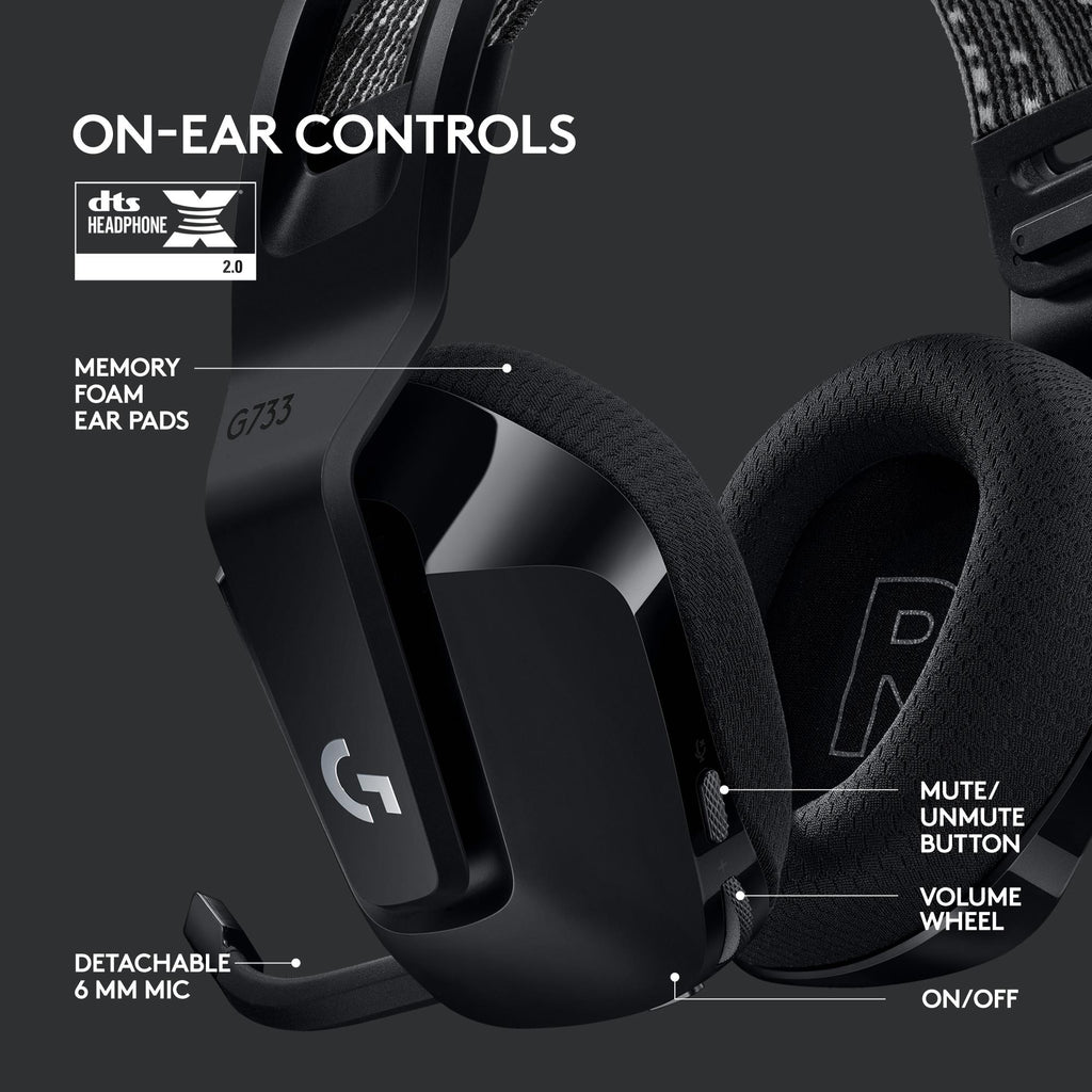 Logitech G G733 Wireless Headset. Product type: Headset. Connectivity technology: Wireless. Recommended usage: Gaming. Headphone frequency: 20 - 20000 Hz. Wireless range: 20 m. Weight: 278 g. Product colour: Black