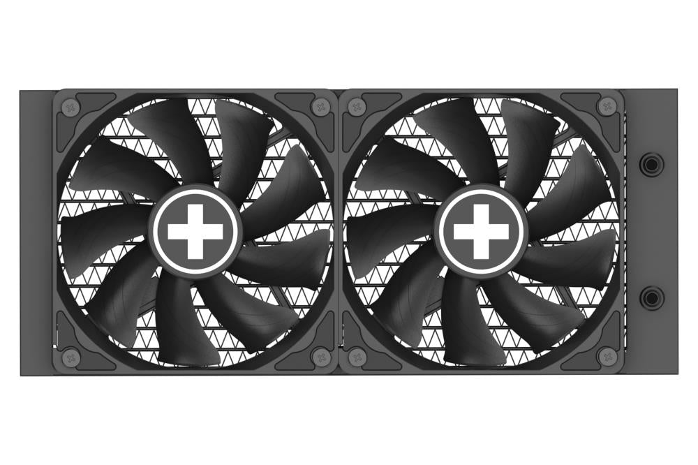 The all-in-one water cooling system LQ240PRO is the ideal companion for gaming adventures with the highest performance requirements. With a TDP of 300 watts, it is able to cool even very hot CPUs without performance loss. The assembly is simple and fast due to the quick-mounting system. All current CPUs from AMD and Intel are supported. The design of the water cooler is kept in a noble, black metallic look. The square pump head with a large, powerful copper cooling plate and discreet ARGB lighting fits perfectly into the picture and looks stylish. The elegantly sheathed, flexible black hoses can be comfortably routed in the housing in any mounting form. The fans of the LQ240PRO are equipped with Fluid Dynamic Bearing technology (FDB) and ensure smooth operation despite heated gaming sessions. Only a barely perceptible whisper of the cooling airflow is heard. The embossed logo of the fans emphasizes the metallic look and underlines the elegance of the water cooling. Available as black 240mm version with ARGB illuminated pump head and 2x FDB fans. *Optionally, ARGB fans (XPF120.ARGB | XF063) can be mounted on the radiator instead