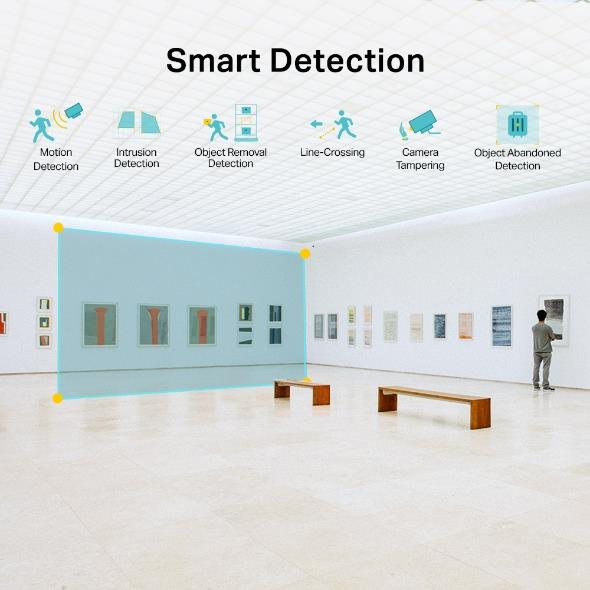 - Smart Detection: Receive notifications and check feeds when someone crosses a boundary, enters an area you've set, obstructs the camera, or removes/abandons objects.