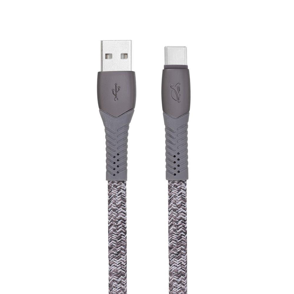 PS6102 GR12 Type C 2.0 cable 1,2m grey • Stylish material combination of nylon braided cable jacket with zinc alloy. • Flat cable design prevent tangeling and has long lifetime. • AWG 24 pure cooper power wires provide full power performance from your charger to your device due to lowest power losses. • Long and flexible strain relief withstands 5000+ bend cycles. • USB 2.0 interface data transfer speed is up to 480Mbps. • Length 1,2m/4ft gives you more freedom. • Compatible with all USB-C devices
