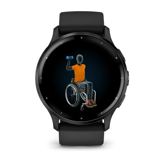Venu 3 Slate stainless steel bezel with black case and silicone band