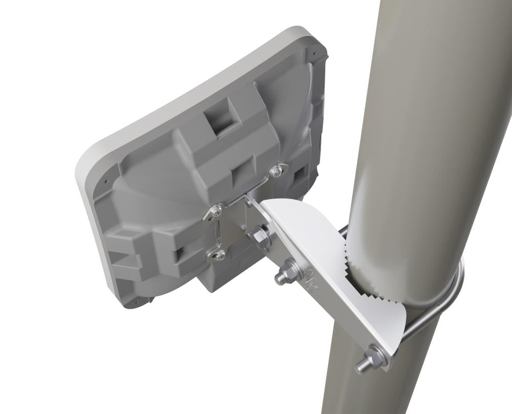 Attach it to the back of the SXTsq using a Ph1 screwdriver, mount everything on a pole using the provided U bolt and an 8 mm ratchet, then place the bolt in one of the three positions - these enable fine adjustments up to 45 degrees in both directions!