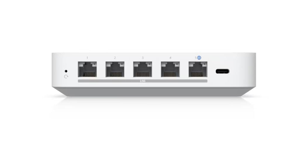 UBIQUITI Gateway Max (UXG-MAX) Compact, multi-WAN independent gateway with full 2.5G support for high-performance networking at small-to-medium sites. Managed with a CloudKey, Official UniFi Hosting, or UniFi Network Server Up to 1.5 Gbps routing with IDS/IPS (1) 2.5 GbE WAN port (4) 2.5 GbE LAN ports, including (1) remappable to WAN USB-C powered (adapter included) Managed with UniFi Network 8.1.113 and later