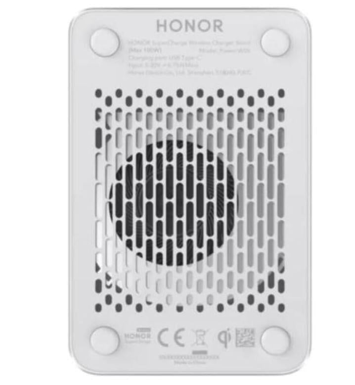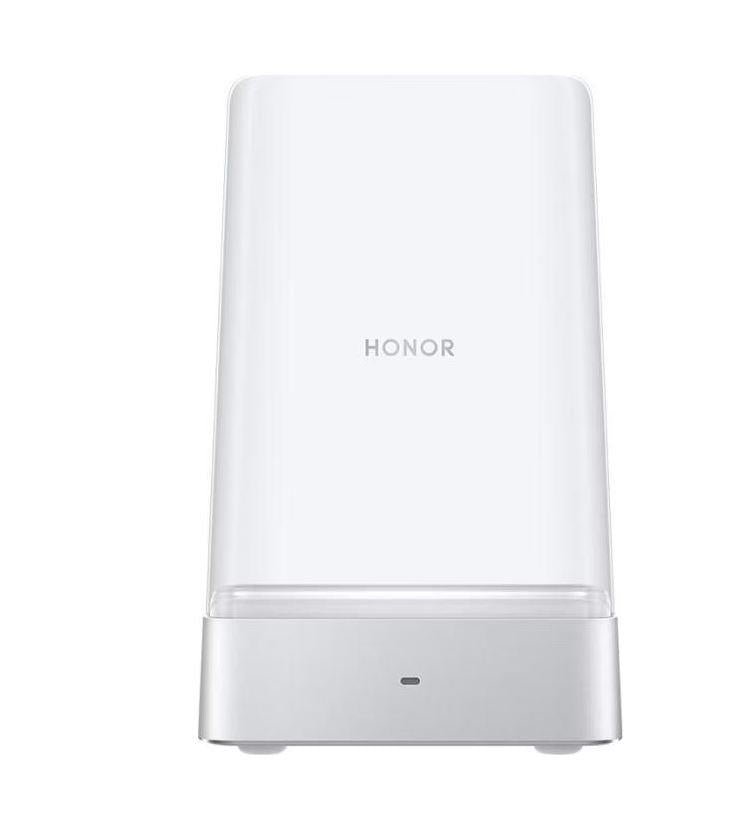 Not just a charger, but also a holder. The vertical design with an installation angle of 65 degrees makes it both a wireless charger and a vertical holder. The maximum power reaches 100 W, setting the new HONOR SuperCharge record. The dual coil design ensures a long range. It is easy placement, so the phone can be vertical or horizontal. The horizontal mode allows you to watch a film on the phone while charging. You do not need to remove the case before charging the phone. You can operate the phone with just one hand while charging. Built-in low-noise fan, the fan speed can be intelligently controlled. It can automatically switch to ultra-low noise mode4 at night. So you can sleep peacefully even when the charger is on your bed. The metal base and the built-in highly efficient centrifugal fan significantly improve heat dissipation. The innovative 3D air channel on the underside not only dissipates the heat for the charging station, but also the heat for the phone. The efficient heat dissipation shortens the charging time.
