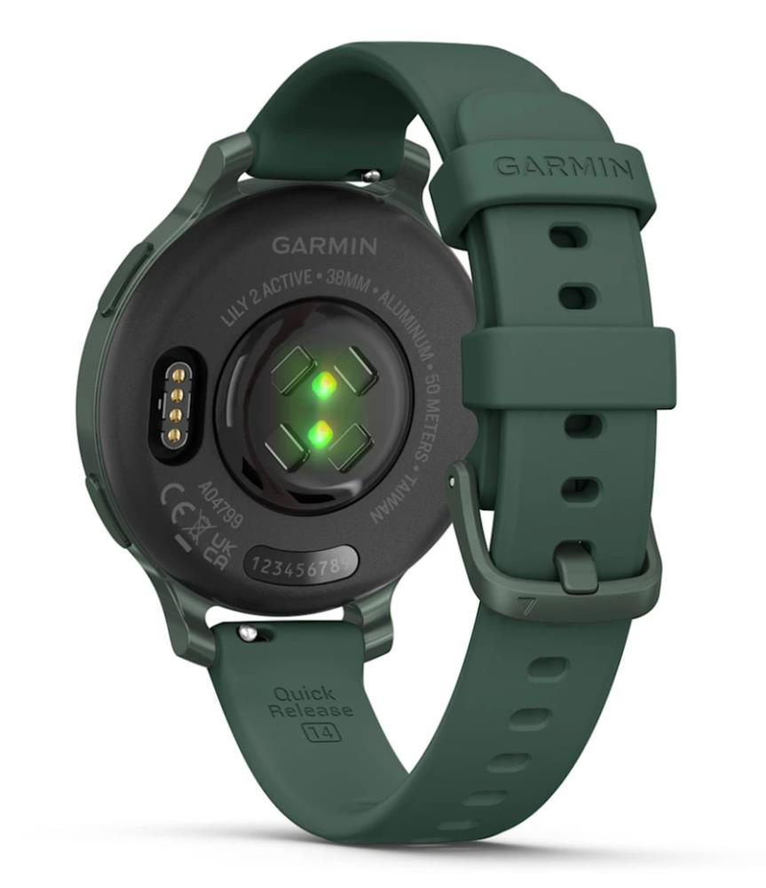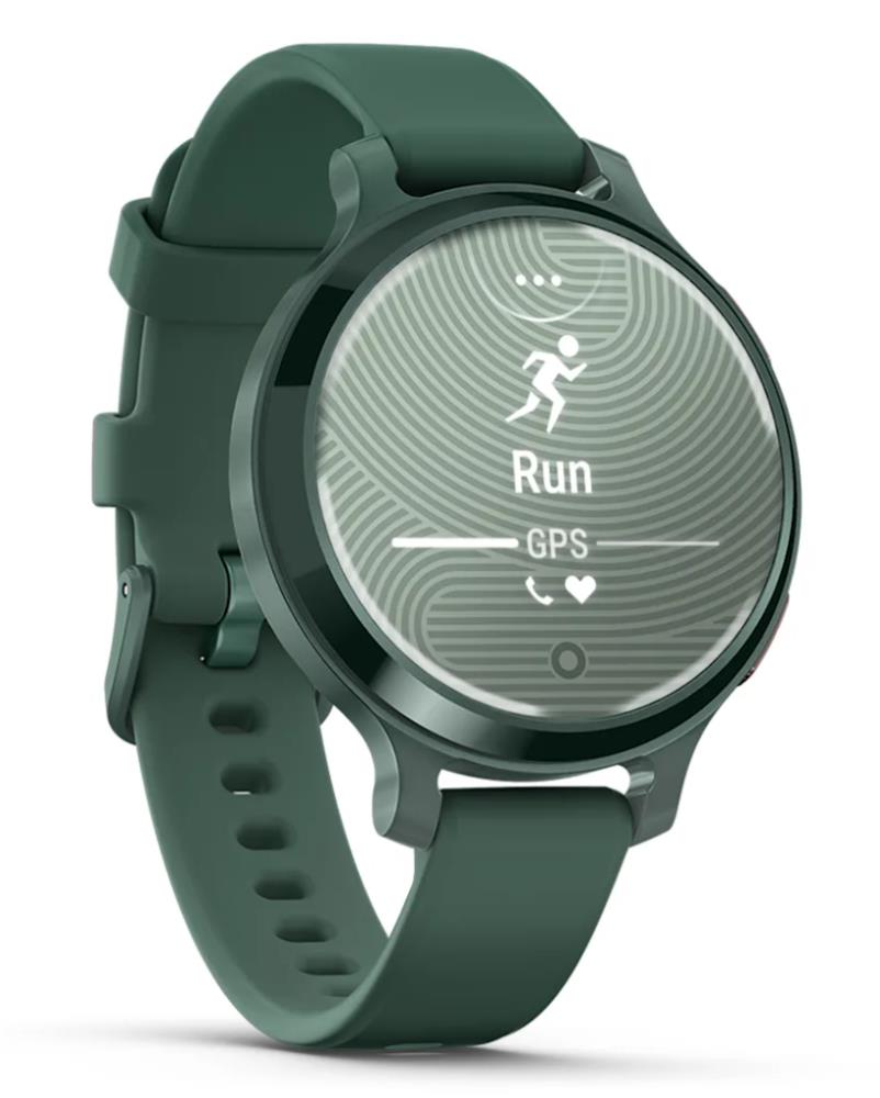 Lily® 2 Active Jasper Green with Jasper Green Silicone Band Featuring a hidden display and patterned lens plus essential health and fitness features, Lily 2 Active is more than meets the eye. It’s the small, stylish smartwatch with built-in GPS designed to help you look and feel good — inside and out. Perfect for any look, this fitness smartwatch features a metal watch case, two buttons and a beautiful patterned lens. Plus, with a quick tap or wrist turn, the Lily 2 Active smartwatch reveals a bright display.