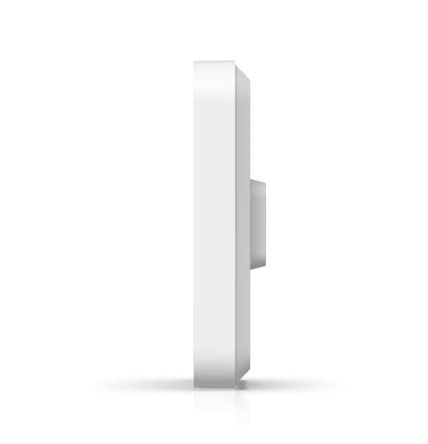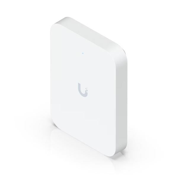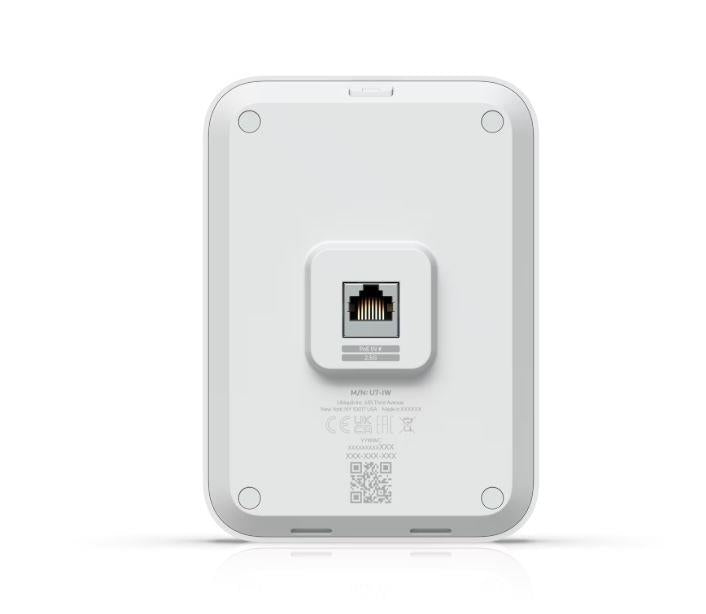 UBIQUITI Access Point (U7-IW) Wall-mounted WiFi 7 AP with 4 spatial streams and an integrated 2.5 GbE PoE switch designed for hospitality environments.