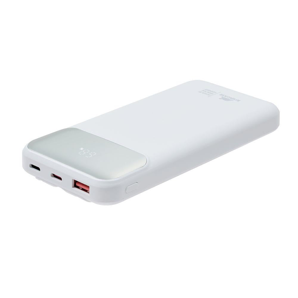 Rivapower VA2211 (10000 mAh) white, QC/PD 3 built-in cables Portable fast charge battery with built-in cables Product Features: • 10000 mAh rechargeable Li-Pol battery. • Display shows the level of charge. • Over-charging, over-discharging, overload and short circuit protection • Automatic turn on/off. Just plug your device(s) into RIVACASE battery output socket(s) and the charging will start. • Smartphone charging - up to 2 times. KEY FEATURE: • 3 built-in cables - no need to search for the right cable to charge your phone! • Fast charge up to 22,5W • recharging via USB-A or USB-C built-in cables