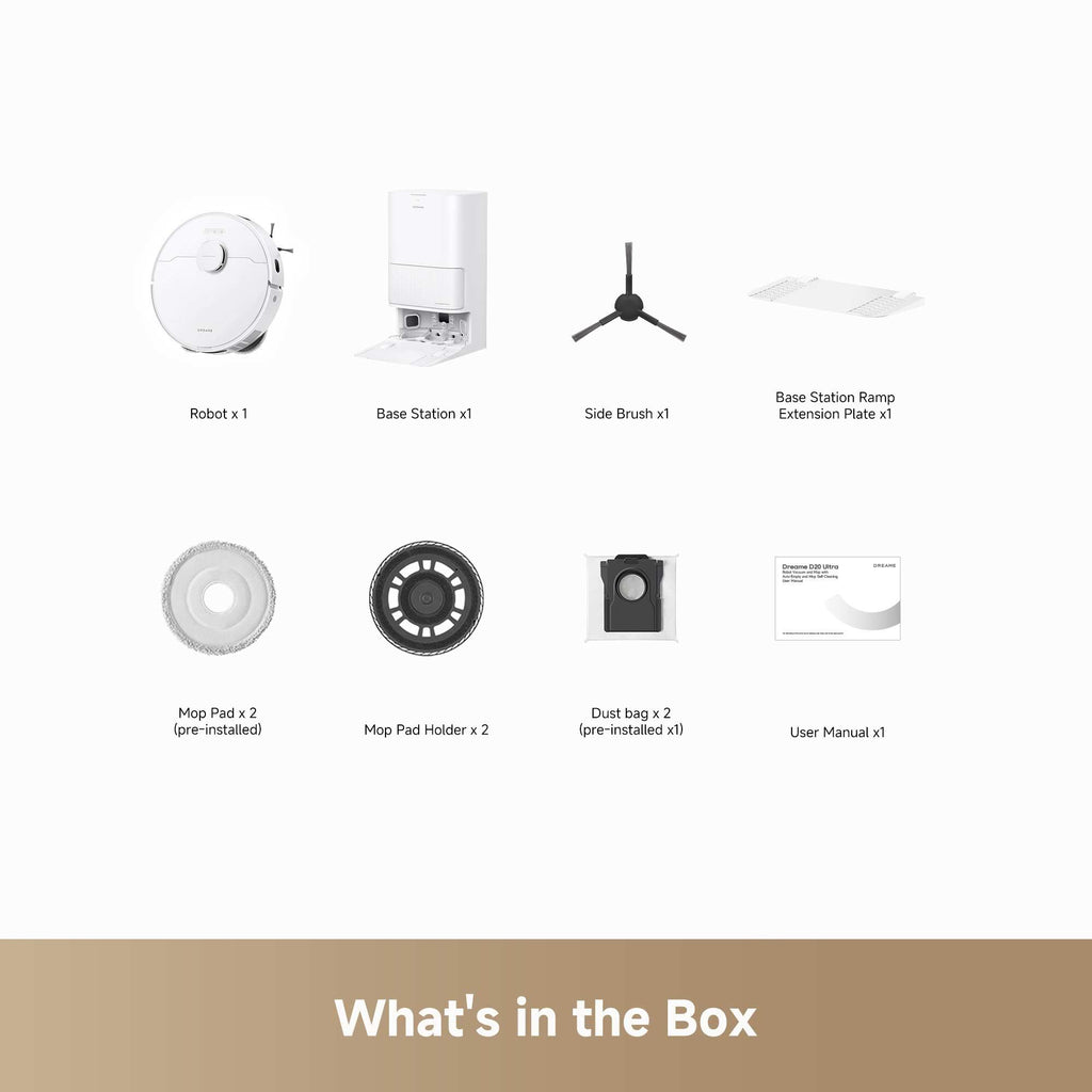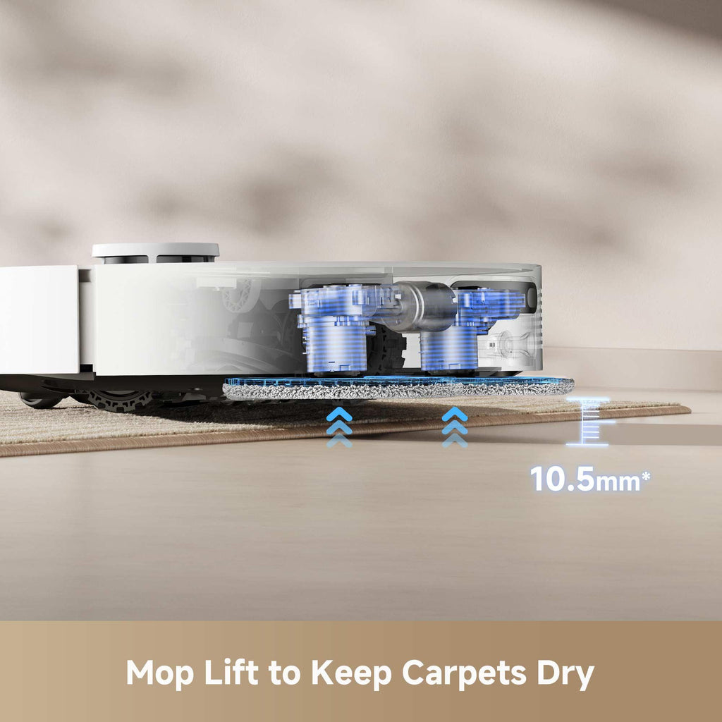 Robot Vacuum and Mop with Self-Cleaning and Auto-Empty Discover powerful cleaning performance with D20 Ultra, boasting 13,000Pa suction that easily collects debris, screws, and stubborn particles in its spacious built-in dust box. With Smart Pathfinder™ technology and advanced 3D mapping, the robot navigates obstacles precisely for optimal cleaning efficiency. Innovative RoboSwing Technology enhances corner cleaning, removing dust from baseboards and delivering complete edge-to-edge coverage. Enjoy up to 100 Days of hassle-free dust collection with a 3.2L dust bag intended to empty completely and prevent clogging. 13,000Pa Vormax™ Suction Harness the strength of 13,000Pa Vormax™ suction to effortlessly remove dirt and stubborn particles from hard floors and carpets, ensuring your home remains spotless. Keep Carpets Dry with Mop Lift The mops automatically lift up to 10.5mm upon detecting carpets, ensuring they stay dry while enhancing cleaning efficiency for various tasks on hard floors and carpets. Hands-Free for Up to 100 Days Discover hassle-free cleaning with automated dust collection, complemented by a spacious 3.2L dust bag that offers up to 100 Days of continuous use without frequent emptying. Warm Air Drying for Fresh Mops Say goodbye to unpleasant smells, mold growth, and ongoing mop dampness with the automated warm air drying system that traps and removes excess moisture.