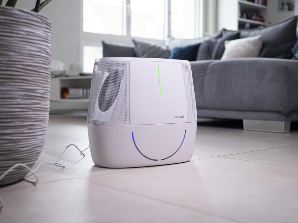 Breathing clean, well-humidified air is the foundation for your health. Our ANTARES air washer is a true all-rounder. It cleans the air, removing even the smallest particles, such as pollen and dust, while simultaneously humidifying it. The antibacterial-coated filter mat rotates in the water, washing contaminants from the air. This allows you to breathe freely at any time, just like after a cleansing thunderstorm. It's also the first air washer with a visual air quality display and the patented DAST system (Direct Airstream Technology) for 30% more humidification performance while using 30% less.