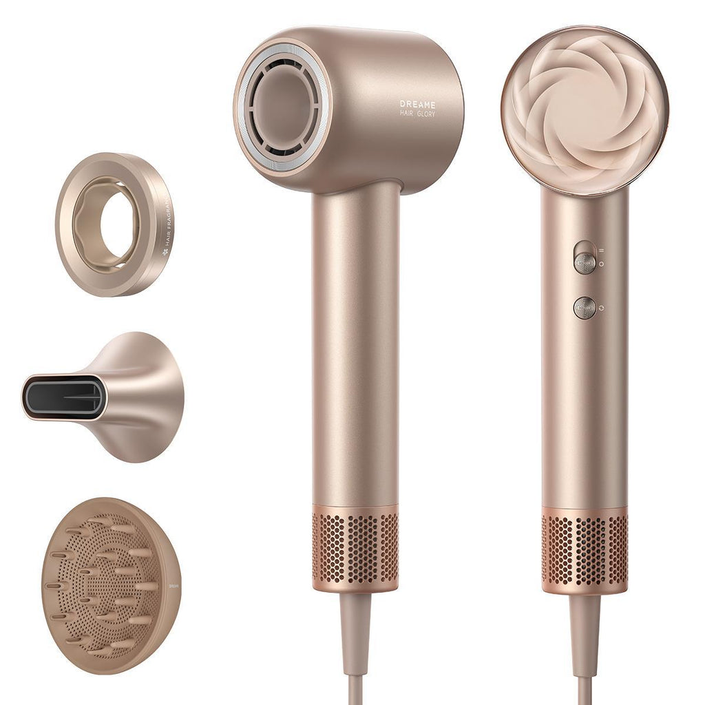 The Dreame Hair Glory Mix High-Speed Hair Dryer is a premium high-speed hair dryer that combines power, style and hair care. Equipped with a digital motor that rotates up to 110,000 rpm, it provides fast drying without overheating. Ionic technology reduces static electricity and adds shine to hair, and multiple temperature and speed settings make it easy to adapt the drying to any hair type.Elegant design