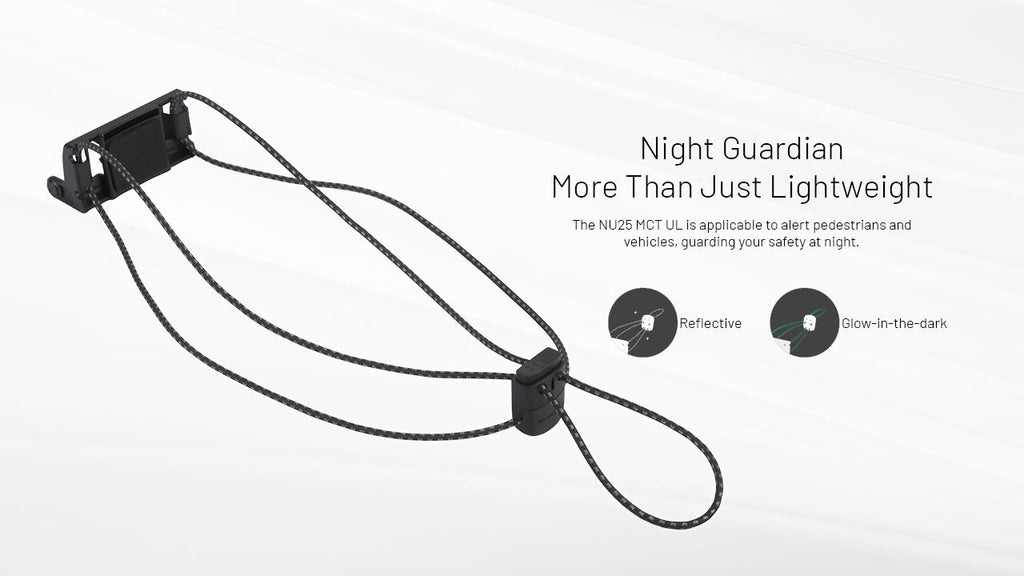 The "NU25 MCT UL" refers to the Nitecore NU25 MCT UL, an ultra-lightweight, rechargeable headlamp designed for outdoor activities like hiking, trail running, and camping.