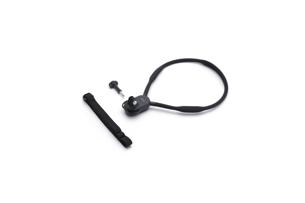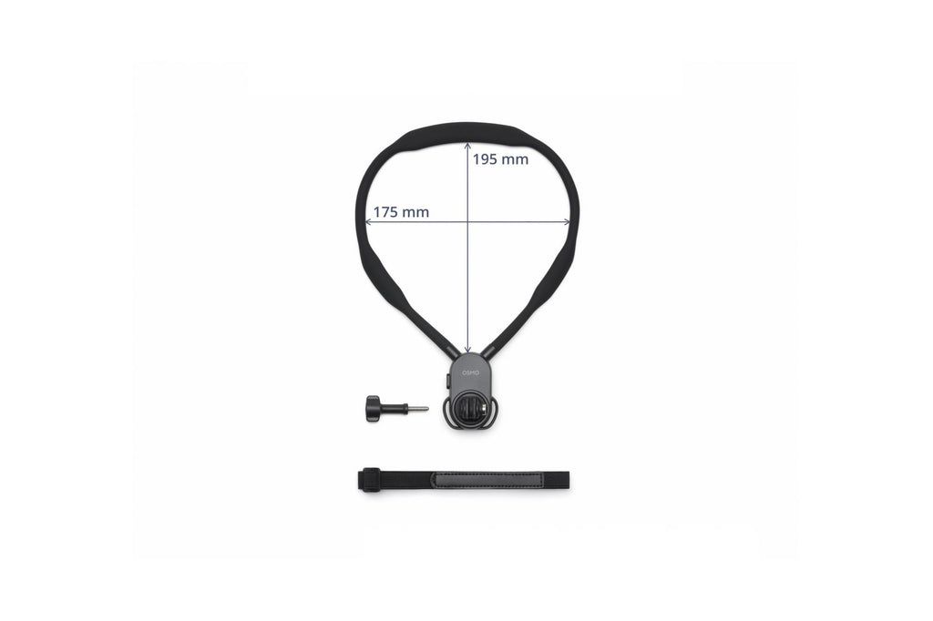 Osmo Hanging Neck Mount Max. It uses a unique silica gel material that is comfortable to wear and can reshape freely, allowing you to take FPV footage easily. Larger size design for more comfortable wear, paired with a strap for added stability. In The Box: Osmo Hanging Neck Mount Max × 1, Chest Strap × 1, Osmo Locking Screw × 1