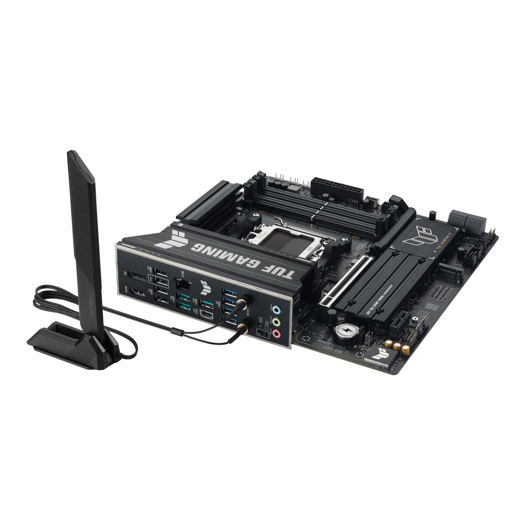TUF GAMING B850M-PLUS WIFI7 ASUS TUF GAMING B850M-PLUS WIFI7 takes all the essential elements of the latest AMD Ryzen™ processors and combines them with game-ready features and proven durability. Engineered with military-grade components, an upgraded power solution and a comprehensive cooling system, this motherboard goes beyond expectations with rock-solid and stable performance for marathon gaming. TUF GAMING motherboards also undergo rigorous endurance testing to ensure that they can handle conditions where others may fail. This platform delivers the power and connectivity that advanced AI PC applications demand.
