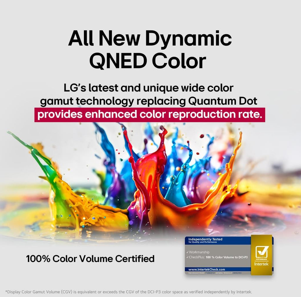 LG QNED AI 65QNED70A6A. Display diagonal: 165.1 cm (65"), Display resolution: 3840 x 2160 pixels, HD type: 4K Ultra HD, Display technology: QNED, Screen shape: Flat, LED backlighting type: Direct-LED. Smart TV. Native aspect ratio: 16:9. Digital signal format system: DVB-C, DVB-S, DVB-S2, DVB-T, DVB-T2. Wi-Fi, Ethernet LAN. Product colour: Black